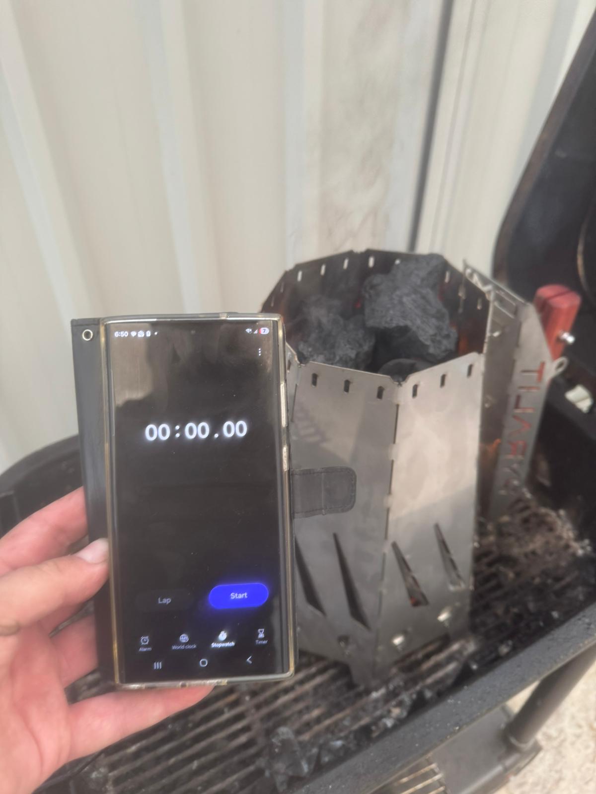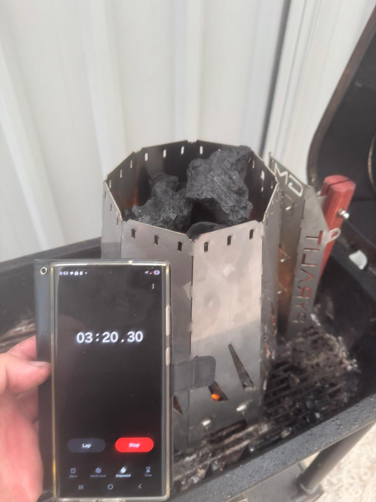 "Hi Pyralit, I had to put your chimney to the test, as I didn't initially believe you could heat a bucket of charcoal in less than 10 minutes. To my surprise, it only took 7 minutes. You've made a great product. Feel free to use this email as a testimonial, I'll attach a few photos.